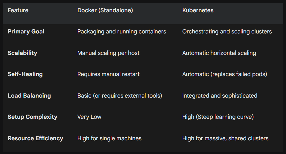 By combining the portability of Docker with the intelligence of Kubernetes, developers can focus on writing code while the infrastructure handles the complexities of scale and stability.
